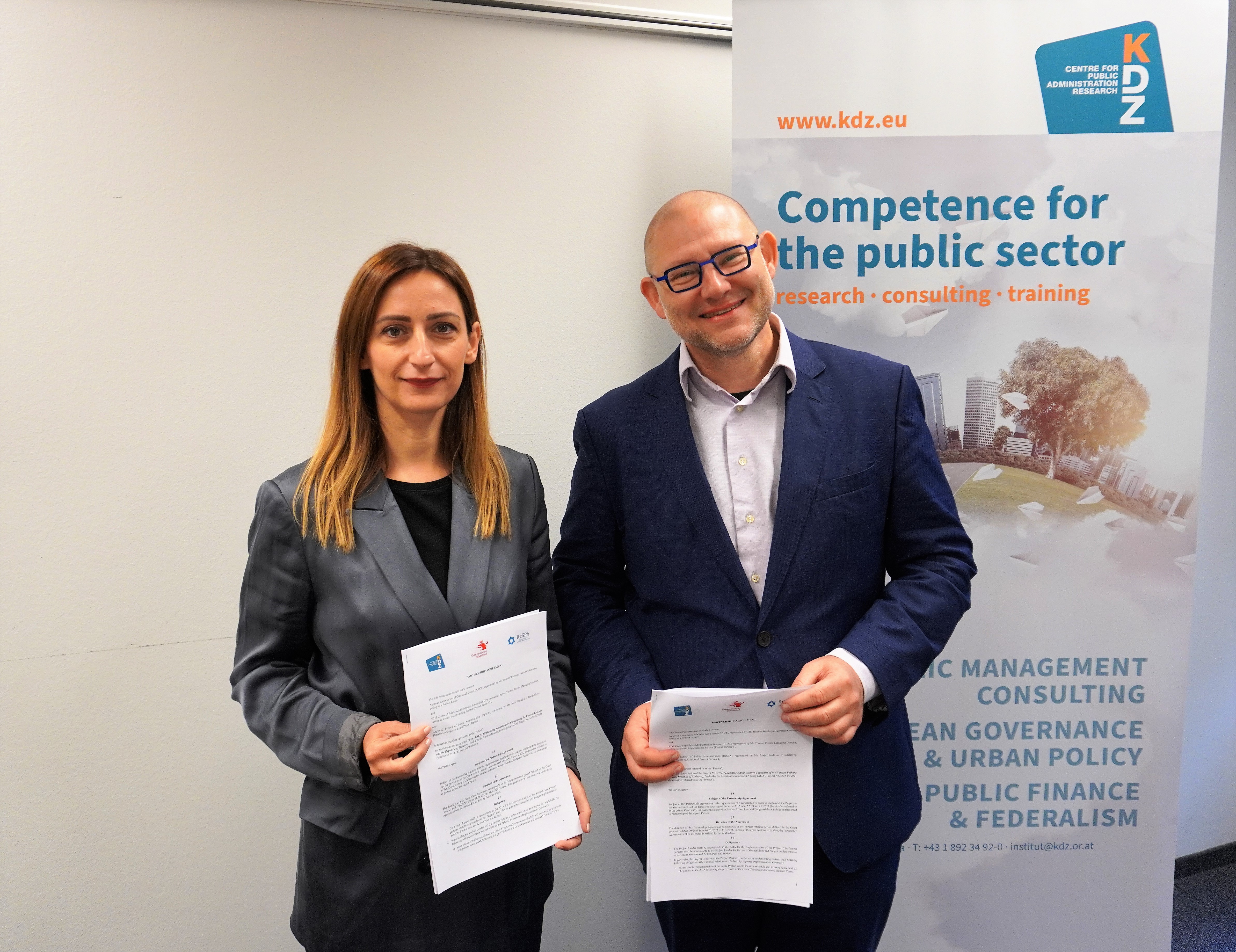 Während der Sitzung des ReSPA (Regional School of Public Administration)-Haushaltsausschusses in Wien überreichten ReSPA-Direktorin Maja Handjiska Trendafilova und KDZ-Geschäftsführer Thomas Prorok die Partnerschaftsvereinbarung für das BACID III-Projekt.
